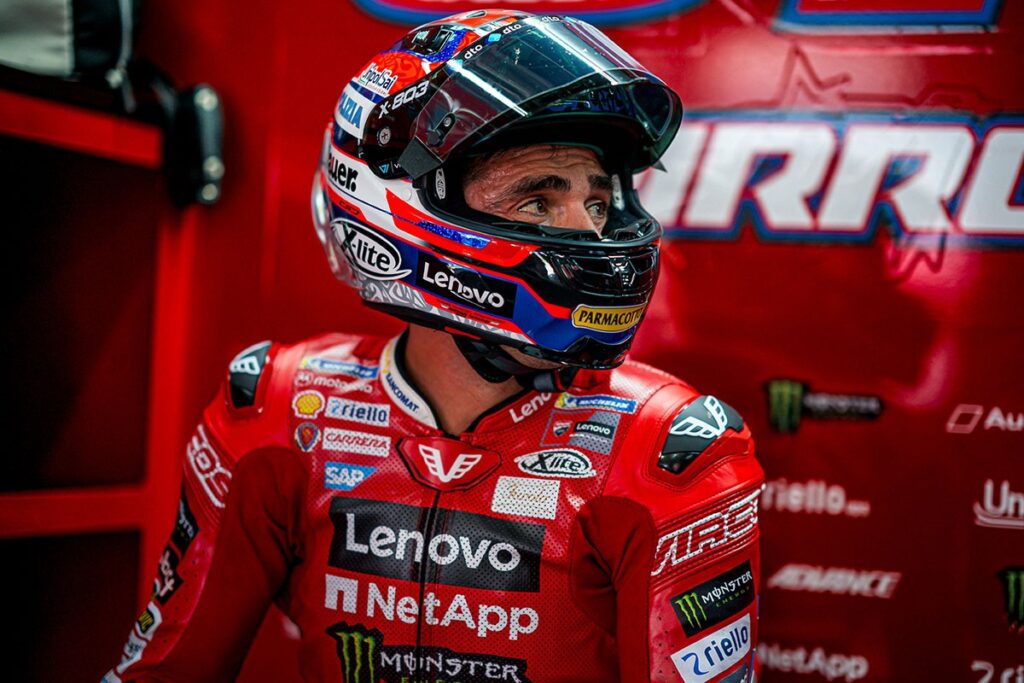 Tai bus pirmasis italo startas „MotoGP“ varžybose nuo praėjusių metų finalo Barselonoje, kur jis VR46 komandoje pakeitė traumuotą Fabio Di Giannantonio, ir pirmas kartas nuo 2023 m. Japonijos GP, kai jis atstovaus gamyklinei „Ducati“ komandai.