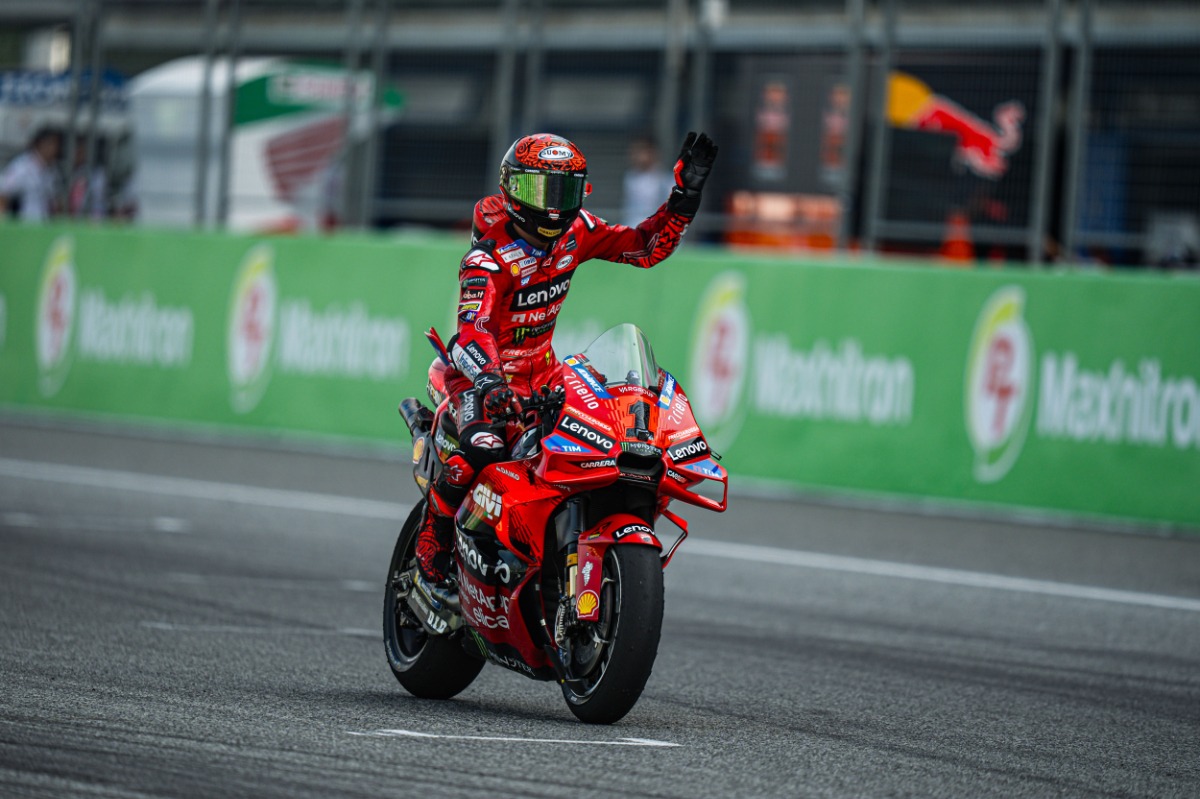 Tailande surengtose „MotoGP“ lenktynėse, kuriose klydo ir nuo motociklų krito ne vienas sportininkas, devintąją pergalę sezone iškovojo čempiono titulą ginantis „Ducati“ lenktynininkas Francesco Bagnaia.