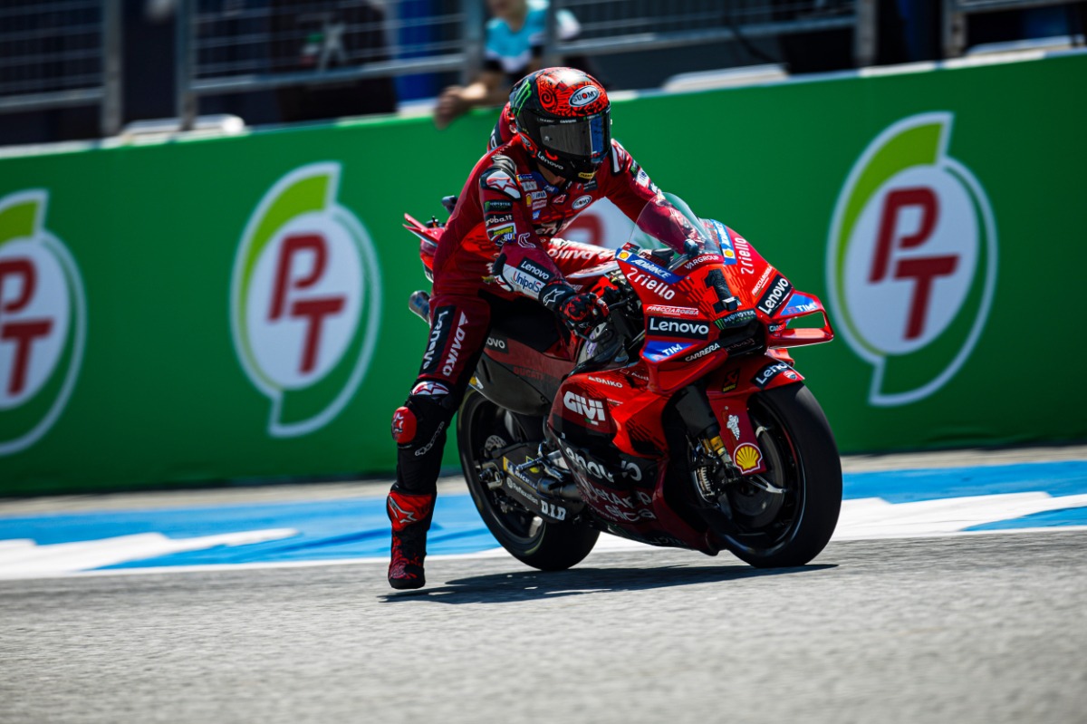 Nuo motociklų kritus tiek Marcui Marquezui, tiek Jorge Martinui, „pole“ Tailande surengtoje „MotoGP“ kvalifikacijoje iškovojo čempiono titulą ginantis Francesco Bagnaia.