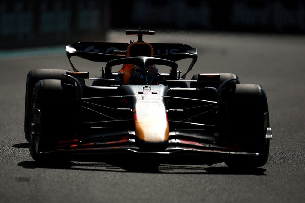 Praėjus kelioms minutėms nuo antros dalies pradžios, rezultatų lentelės viršūnėje atsidūrė abu „McLaren“ komandos sportininkai – O. Piastri ir L. Norrisas. Pastarasis tuo metu buvo 0,1 sek. greitesnis už A. K. Antonellį ir M. Verstappeną.