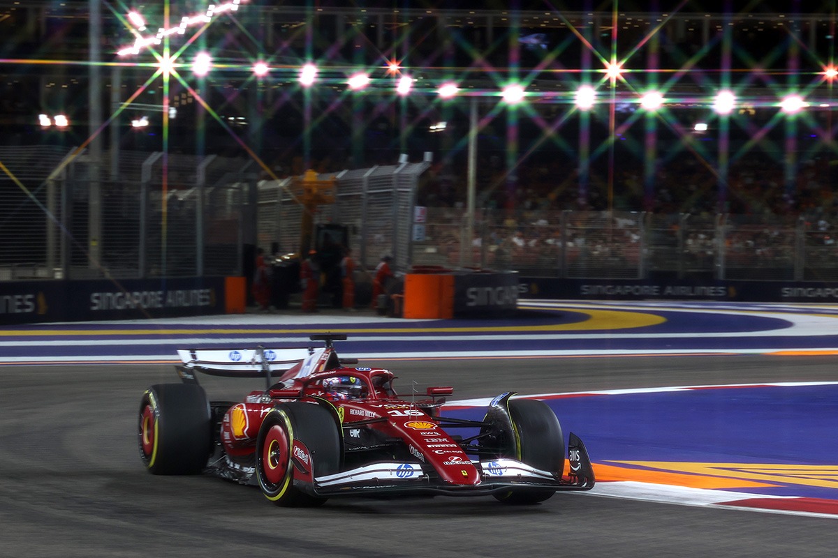 Teisėjai skyrė „Ferrari“ komandai 10 tūkst. eurų baudą už incidentą antrųjų Singapūro GP treniruočių metu, kai Charlesas Leclercas susidūrė su Lando Norrisu.