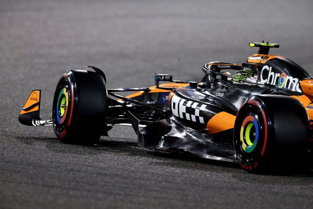 Važiavimų, kurie vyko tamsiu paros metu, pradžioje, greičiausi trasoje buvo „McLaren“ lenktynininkai. Vieną ratą įveikęs per 1 min. 29,140 sek., Oscaras Piastri buvo pirmas ir tuo metu greitesnis už ekipos draugą Lando Norrisą. Bet po kurio laiko australo rezultatą pagerino ir į pirmą vietą pakilo „Ferrari“ lenktynininkas Charlesas Leclercas, vieną ratą įveikęs per 1 min. 29,002 sek.