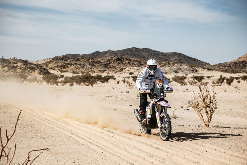 „Planet Superfood Lietuva“ pilotas sako, kad šią dieną puikiai atlaikė ir jo vairuojamas KTM motociklas. Tiesa, buvo kiek prašauta su padangų pasirinkimu, tad prieš antrą Dakaro ralio etapą Mykolas Paulavičius atliks pakeitimus.