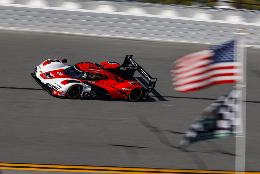 Daytonoje surengtose 24 val. IMSA lenktynėse, kuriose daugiau nei 6 val. buvo praleista važiuojant paskui saugos automobilį, trečius metus iš eilės triumfavo „Porsche“ komanda.