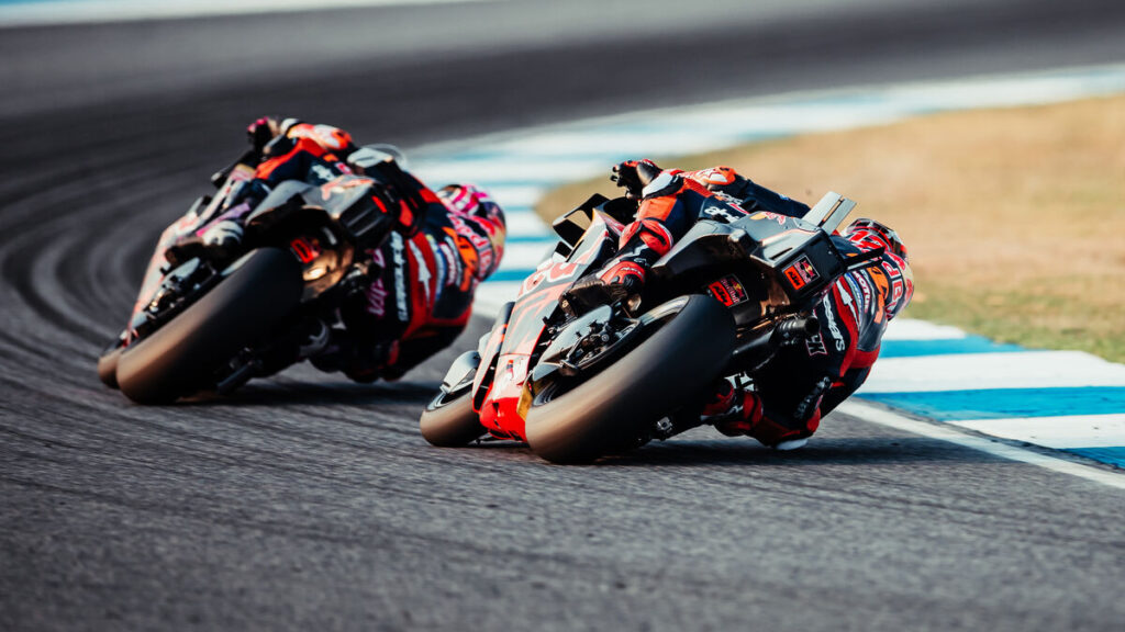 Paskutinę „MotoGP“ bandymų dieną Tailande Marco Bezzecchi užfiksavo geriausią rezultatą ir pagerino trasos rekordą. Iki važiavimų pabaigos likus 20 minučių, italas vieną ratą įveikė per 1 min. 28,668 sek. ir iš pirmos vietos išstūmė iki tol pirmoje vietoje buvusį Marcą Marquezą. „Aprilia“ sportininkas taip pat nežymiai pagerino trasos rekordą, kuris iki šiol buvo 1 min.…